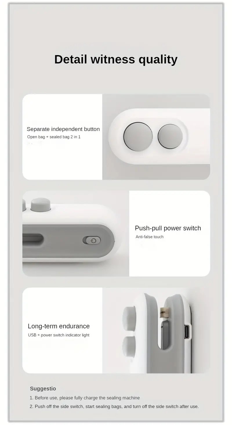 5. In order to avoid malfunction, please keep the sealing machine clean and dry, if it is damp, please dry it with a rag in time.